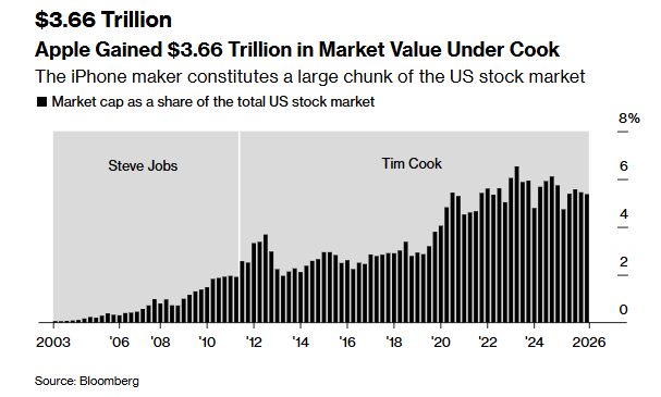 5. Apple Gained $3.66 Trillion in Market Cap Under Cook