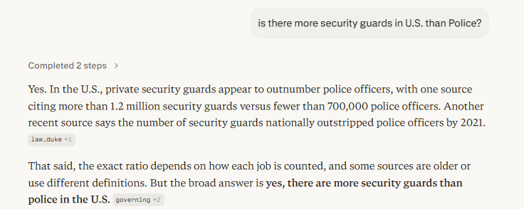 7. More Private Security in U.S. than Police