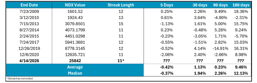 2. History of 12 Day Win Streaks for Nasdaq