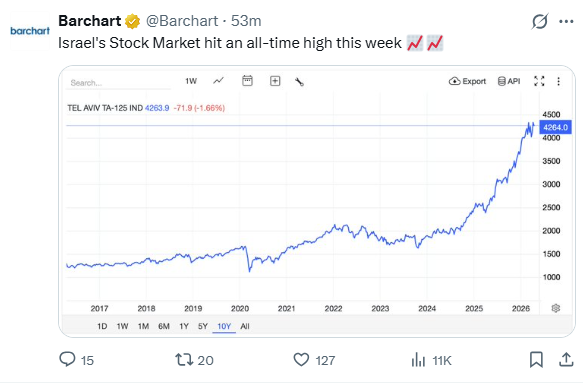 3. Israel Stock Market New All-Time Highs