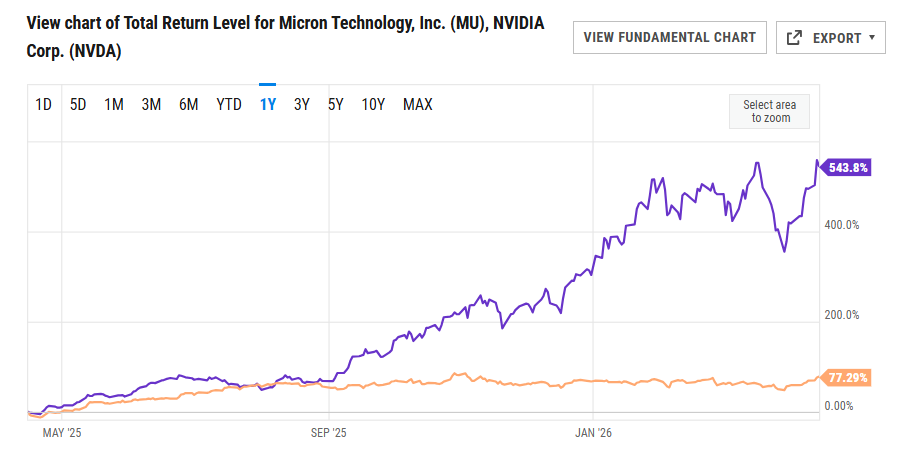 5. MU vs. NVDA One-Year Chart…Even on 3-Year Chart