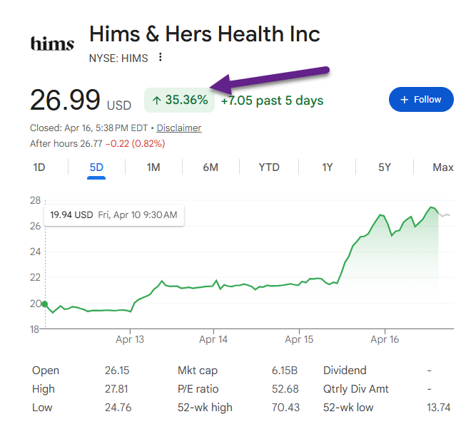 8. HIMS Talking Peptides…Stock +35% 5 Days