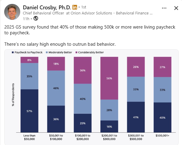 5. 40% of Americans Earning 500k are Living Paycheck to Paycheck