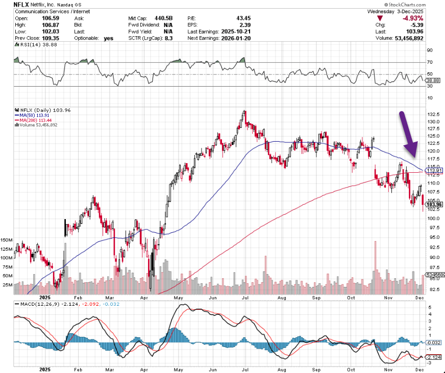 4. Netflix -22% from Highs…50day Close to Crossing Below 200day on Chart