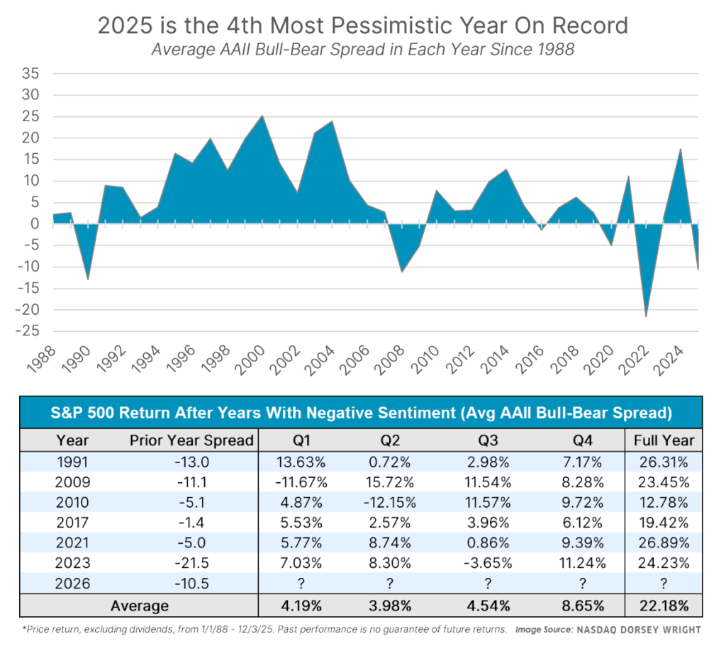 2. Markets Don’t Top Out When Investors are Pessimistic…How About 2025 Being 4th Most Pessimistic Year on Record?