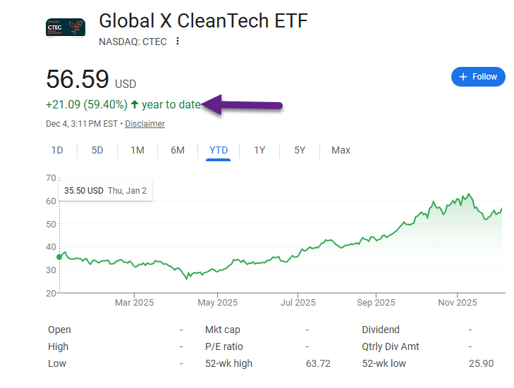 3. Was Trump the Bottom in Clean Energy Stocks? Global X CleanTech +60% YTD