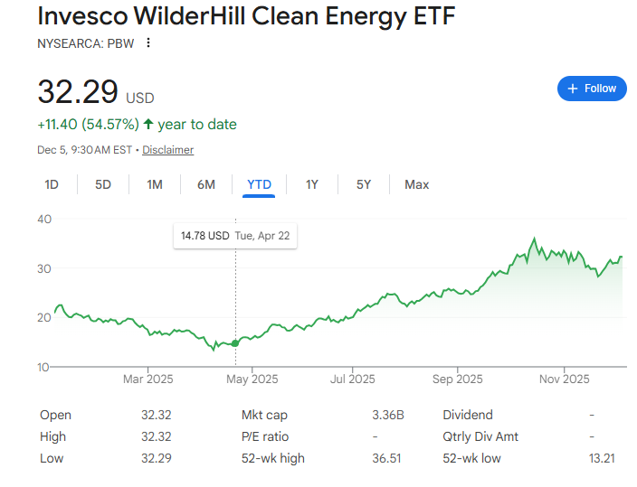 4. Trump was Bottom in Clean Energy Stocsk….Invesco Clean Energy ETF +54% YTD