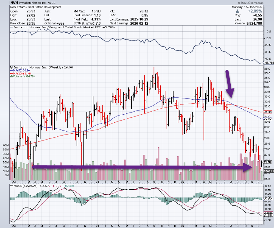 5. Invitation Homes Started Buying Houses in 2012…Back to 2023 Lows…50day thru 200day to Downside