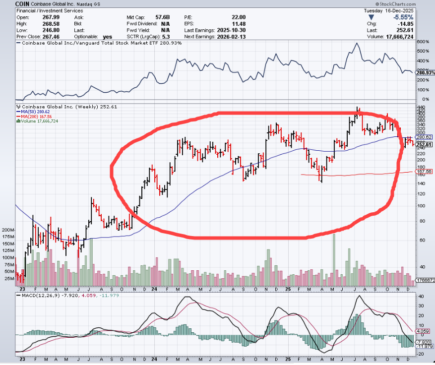 6. COIN Stock Negative For 2025….Sideways 2 Years.