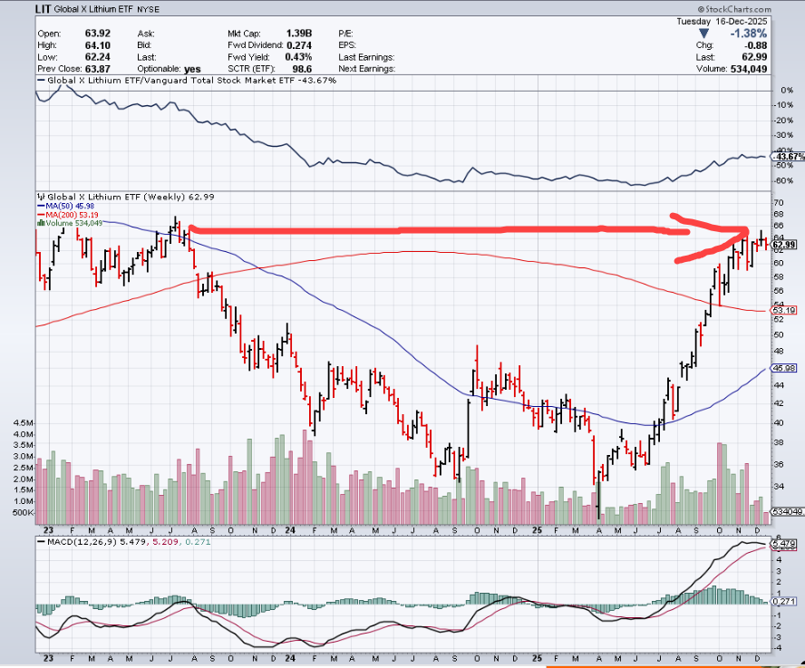 7. Lithium Stocks Up this Morning….LIT ETF Doubled Off Bottom Back to 2023 Levels.