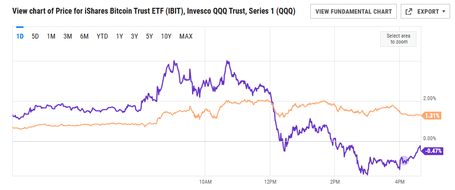 2. Yesterday QQQ +1.31% vs. IBIT (Bitcoin) -0.47%…Bitcoin was up 4% at One Point Before Crashing to Negative on Day