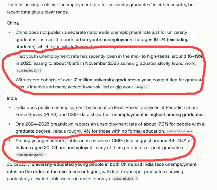 9. Unemployment Rate for College Grads in U.S. 2.5%-2.8%….Vs. China/India