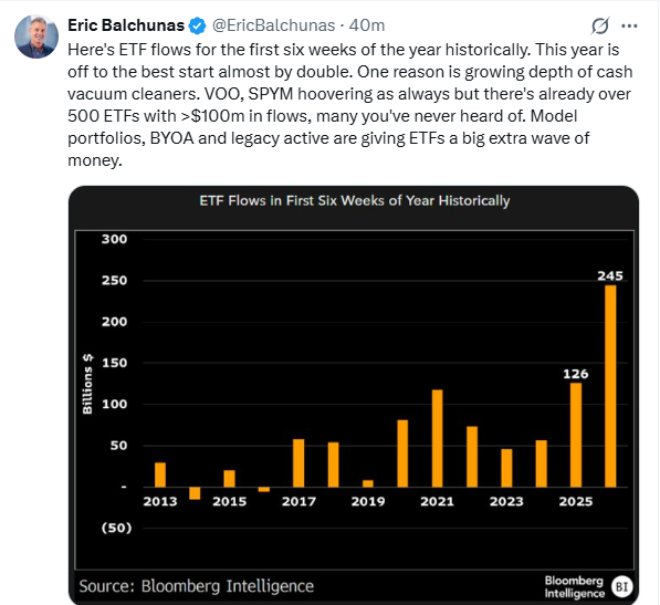4. First Six Weeks 2026 …Massive ETF Flows Double 2025