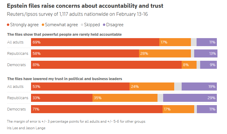 9. Americans believe Epstein files show the powerful get a pass, Reuters/Ipsos poll