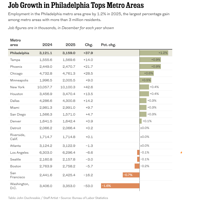 8. Philadelphia Leads Job Growth in Large Metro Areas