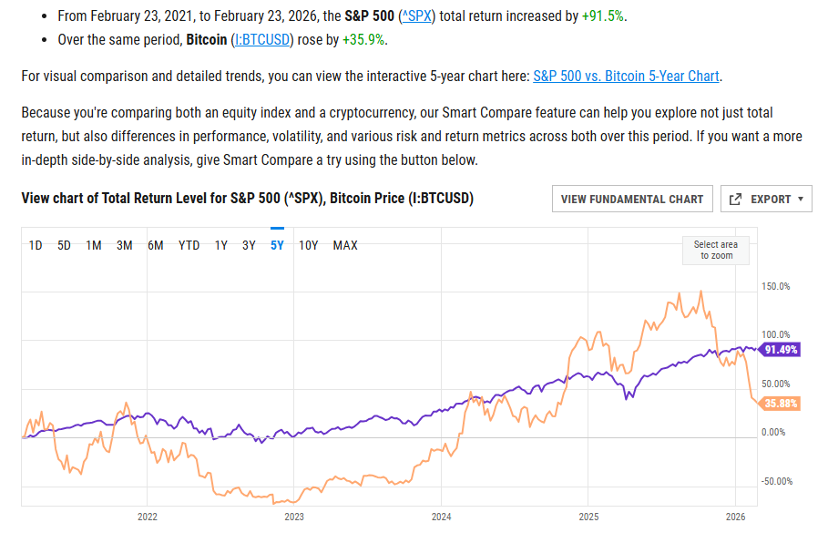 2. 5 Year Chart-S&P +91% vs. Bitcoin +35%