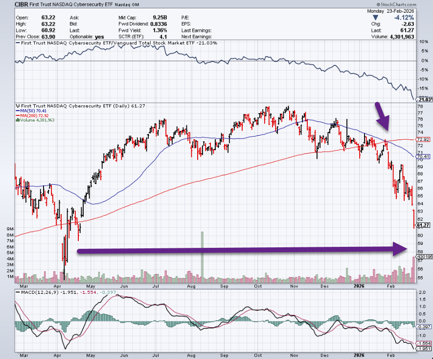 3. Cybersecurity ETF CIBR -20%…Close to Liberation Day Lows