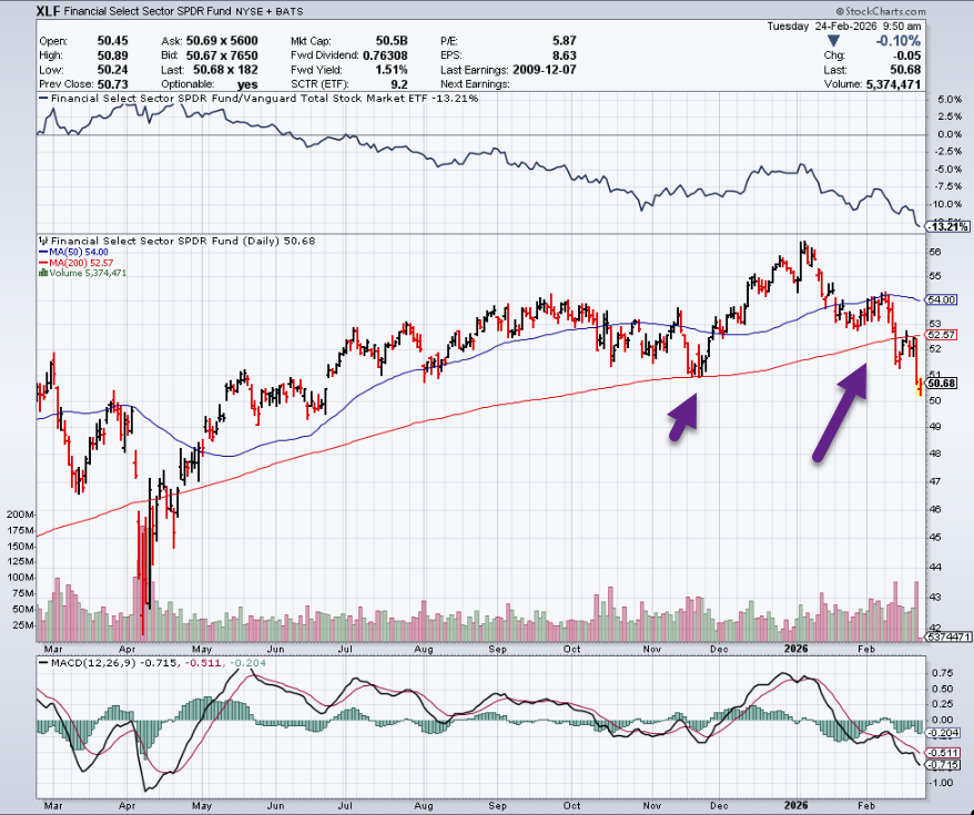 4. XLF Financials ETF Closes Below 200-Day First Time Since Liberation Day Sell Off