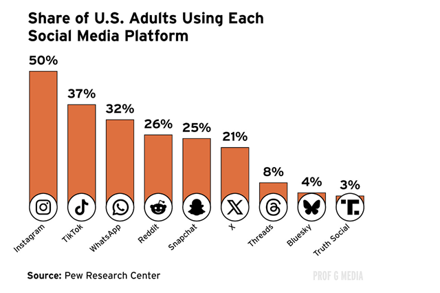 10. Share of U.S. Adults Using Each Social Media Platform-Ed Elson