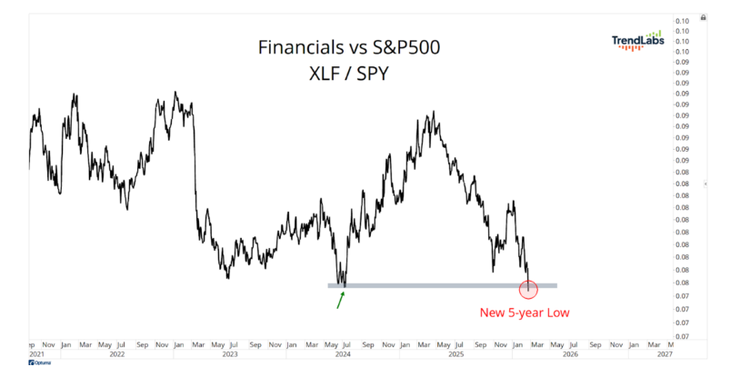 4. Financials Closed at 5-Year Low vs. S&P 500