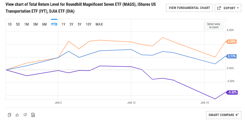 4. 2026 Dow Transports +4.5% Dow Jones +2.20% vs. Mag 7 -3.5%