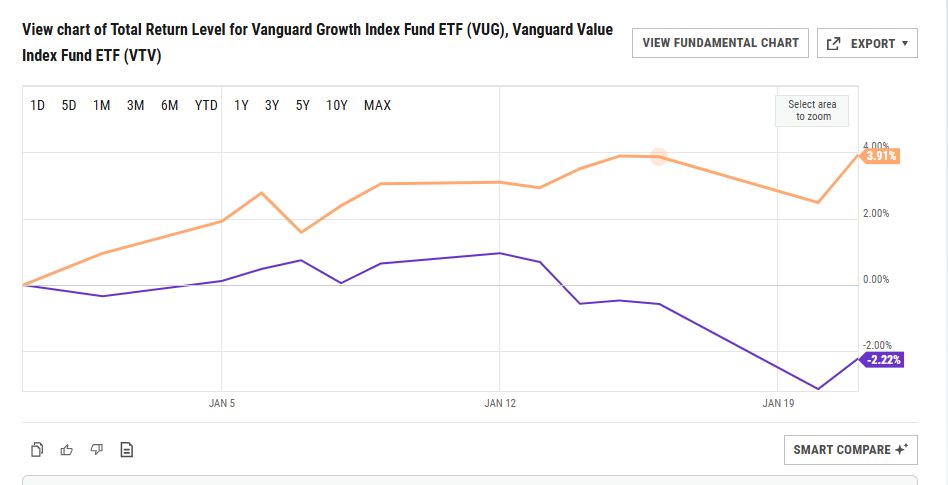 5. Vanguard Value (VTV) Outperforming Growth (VUG) by 6% to Start 2026