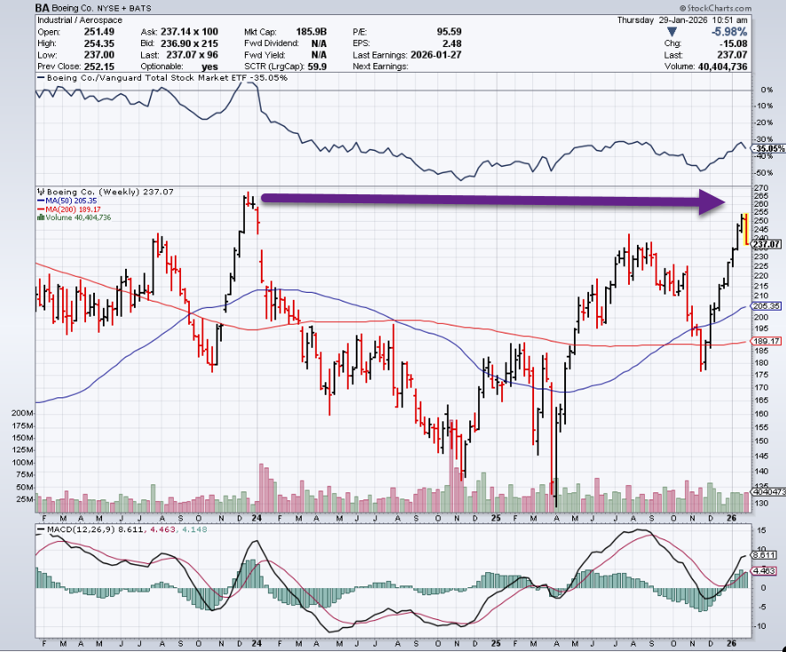 9. Boeing Ran Up to 2024 Highs then Reversed