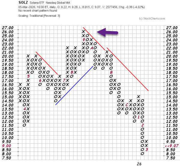 6. Solana (SOLZ) ETF was -70% from Highs at $8