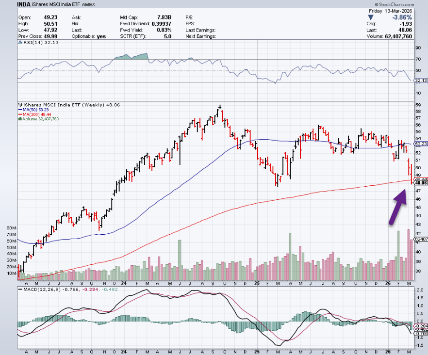 4. INDA India ETF Hit -20% from Highs…Closed Below 200-Week Moving Average