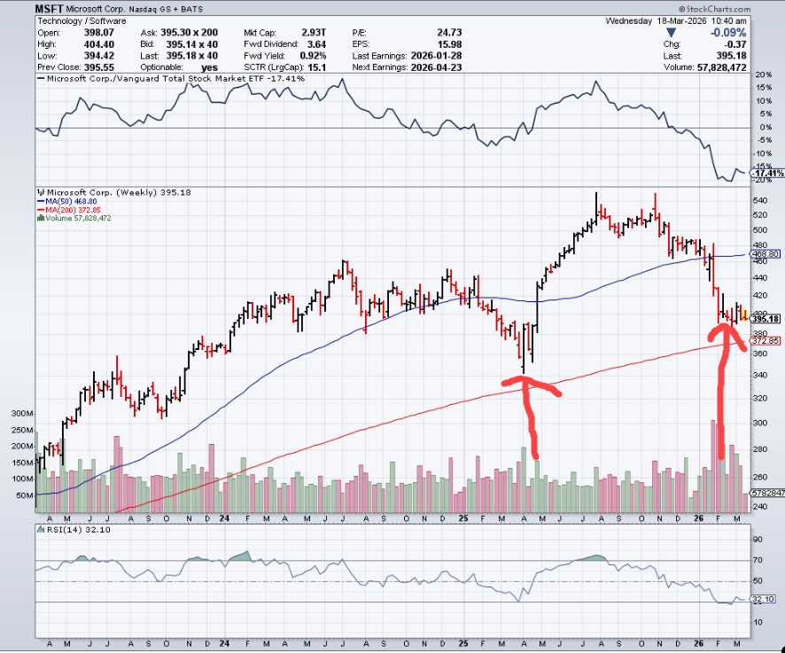 2. MSFT Holding 2025 Lows and 200 Week Moving Average
