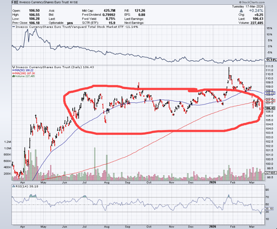 3. Euro Currency Rolling Over Post Iran War—FXE Euro ETF