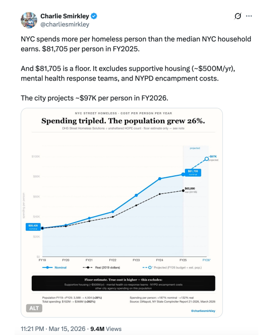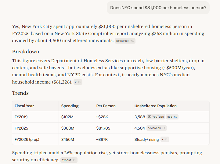 8. NYC Spends More Per Homeless Person than NYC Median Household