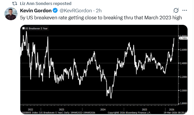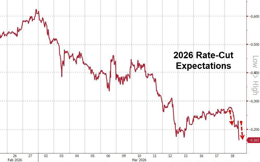 Zerohedge-Rate-cut expectations for 2026 plunged (hawkishly) today (dropping with oil’s gains early and then extending after The Fed). 2026 rate-cut expectations are down from over 62bps to just 15bps today since the start of the war…