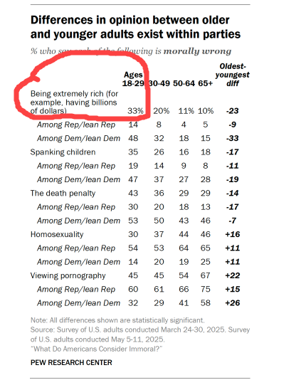 9. 33% of 18-29 Year Olds Say Being Extremely Rich is Morally Wrong