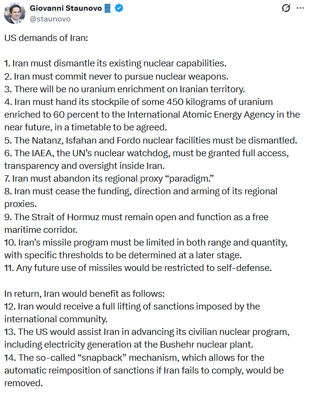 3. Summary of Demands for Iran Ceasefire