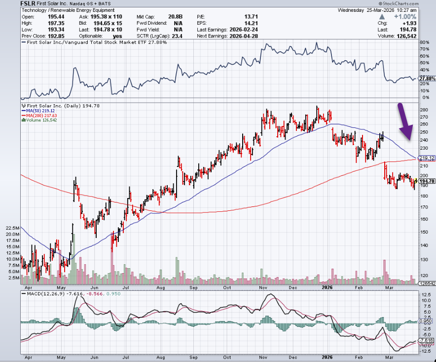5. Solar Not Winning with Higher Oil Prices….FSLR -30% from Highs…50day Close to Crossing Below 200day