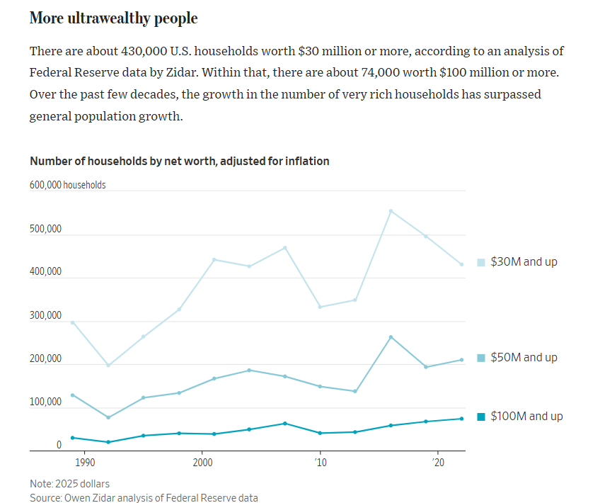 WSJ The number of Americans worth eight or even nine figures is up markedly. It’s transforming the U.S. economy. Rachel Louise Ensign