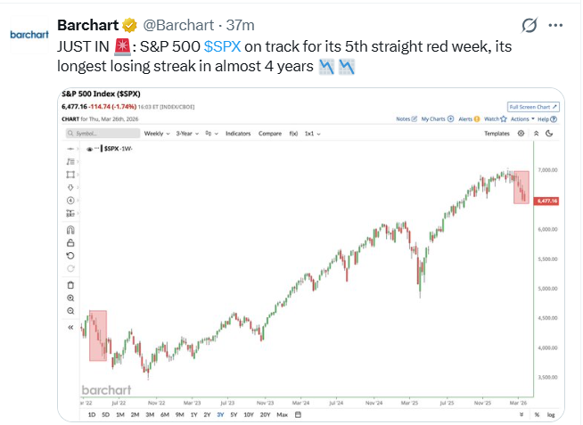 5. S&P on Track for 5th Straight Down Week