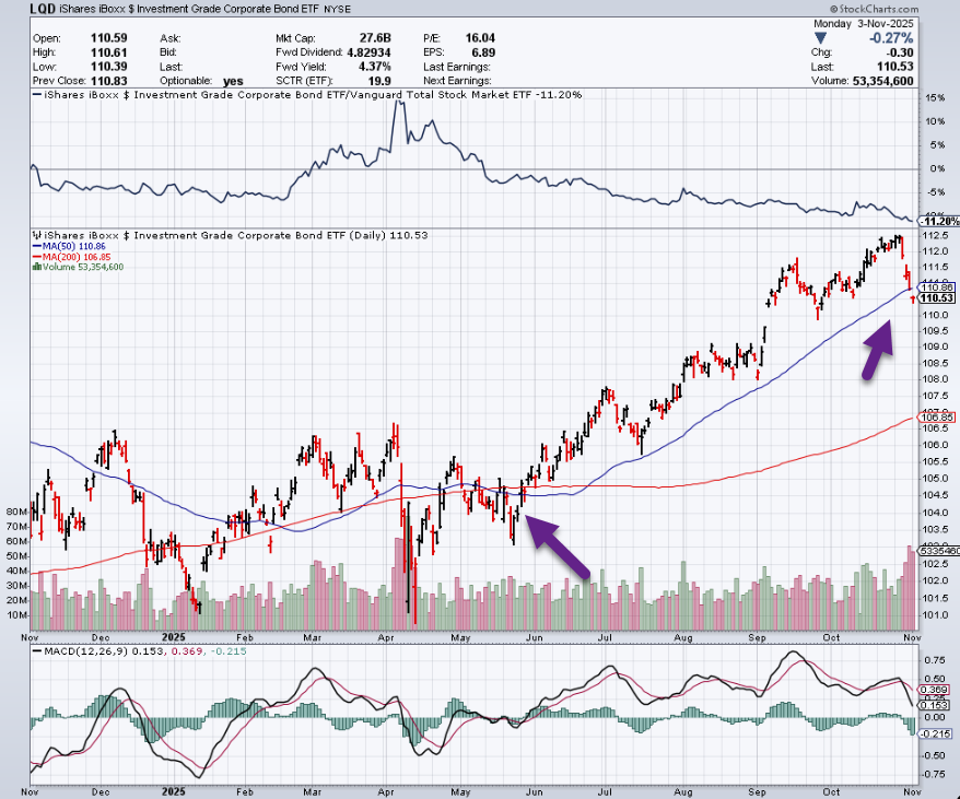 4. Investment Grade Credit ETF Closes Below 50-Day First Time Since May