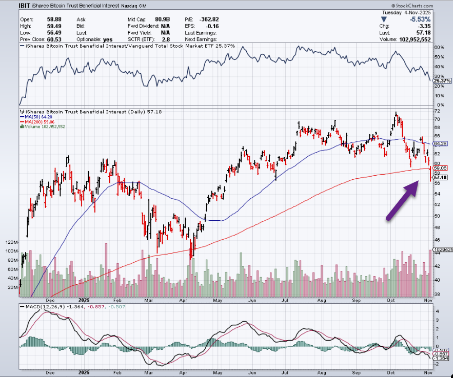 5. Bitcoin IBIT -20% from Highs….Closes Below 200 Day First Time Since April