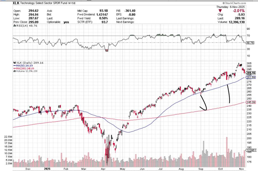 6. XLK Tech ETF Has Been Above 50-Day Since Liberation Day Lows…Pulled Back and Held Multiple Times