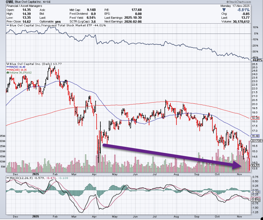 2. Private Credit Fears Growing….Private Lender Blue Owl Stock -41% YTD…Breaks thru Liberation Day Lows