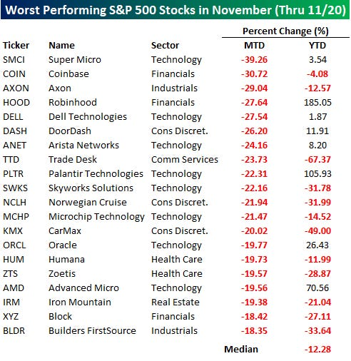 5. Five-Percent Pullback in S&P But -20-40% in Momentum Favorites