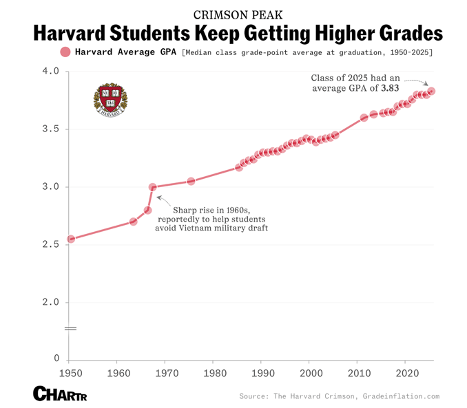 10. Do Your Own Research but According to ChartR Harvard Grade Inflation Started with Avoiding the Vietnam Draft