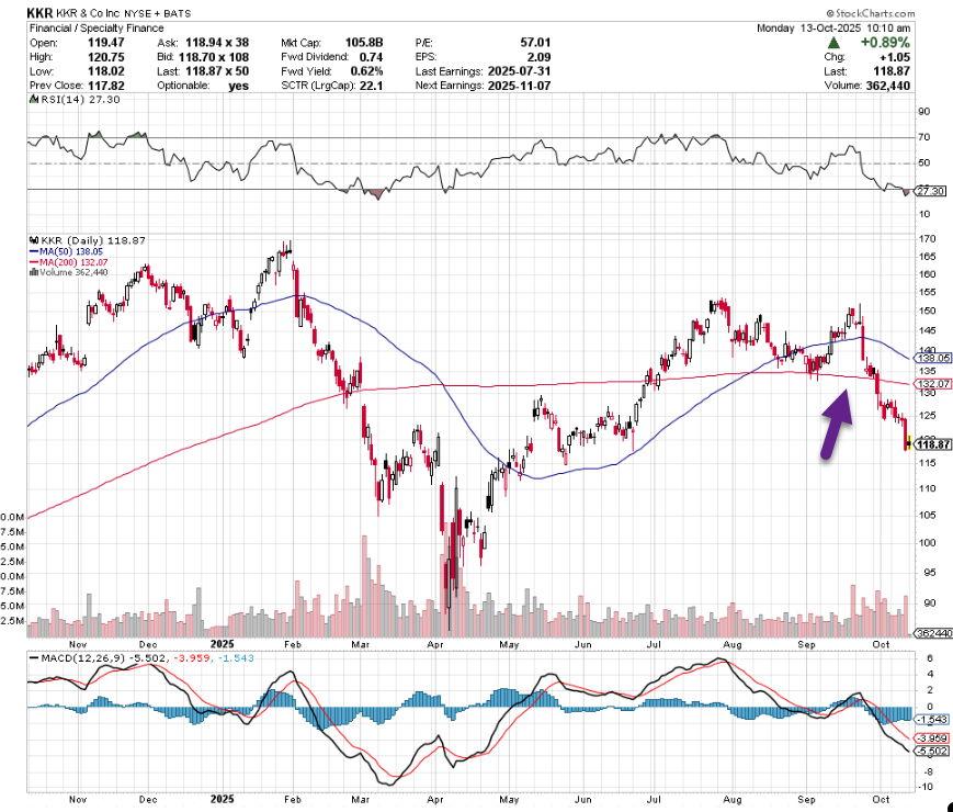 1. Start Today with Private Equity Manager’s Charts…..KKR -20% Year to Date-Failed to Make New Highs—Close Below 200day