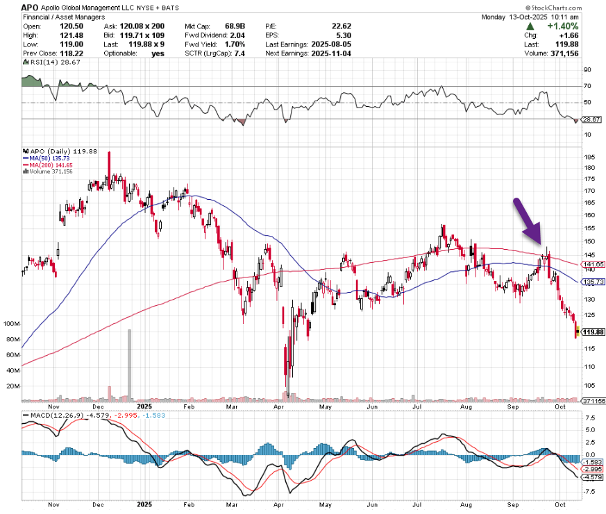 2. Apollo -28% Year to Date…Failed to Make New Highs….50day and 200day sloping down