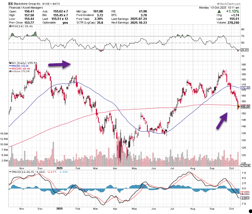 3. Blackstone -10% Year to Date…Failed to Make New Highs…Closed Below 200 Day