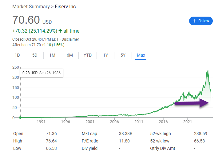 5. In One Day…..Fiserv Gave Back All Stock Gains Going Back to 2016